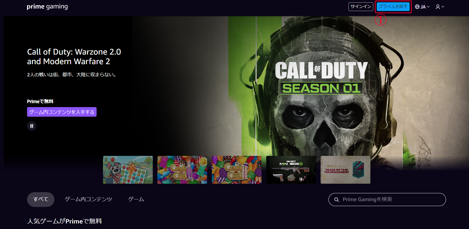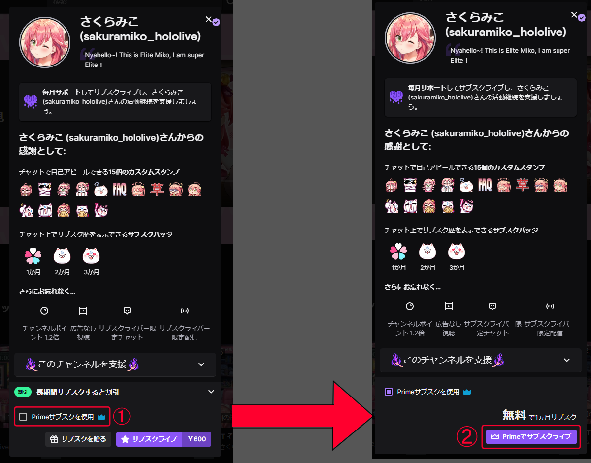 Amazonプライムに含まれている Prime Gaming 会員はTwitchのチャンネル1つを毎月無料でサブスクライブできます。